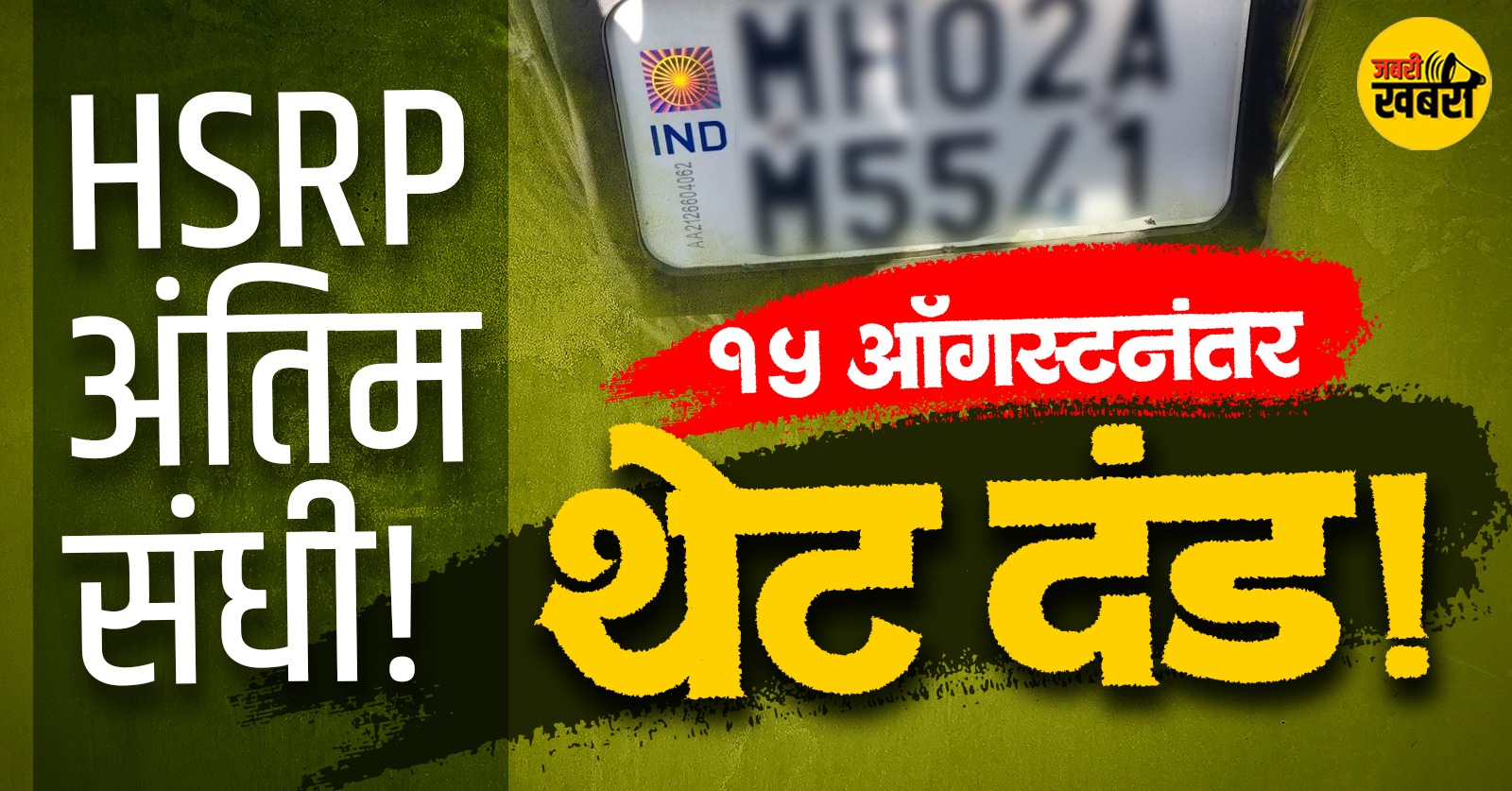 राज्य सरकारने मोटार वाहनांच्या सुरक्षिततेसाठी एक महत्त्वाचा निर्णय घेतला आहे. १ एप्रिल २०१९ पूर्वी नोंदणीकृत सर्व वाहनांसाठी हाय सिक्युरिटी नोंदणी पाटी (HSRP – High Security Registration Plate) बसविणे आता अनिवार्य करण्यात आले आहे. याअंतर्गत वाहनधारकांना आता १५ ऑगस्ट २०२५ ही अंतिम मुदत देण्यात आली आहे.